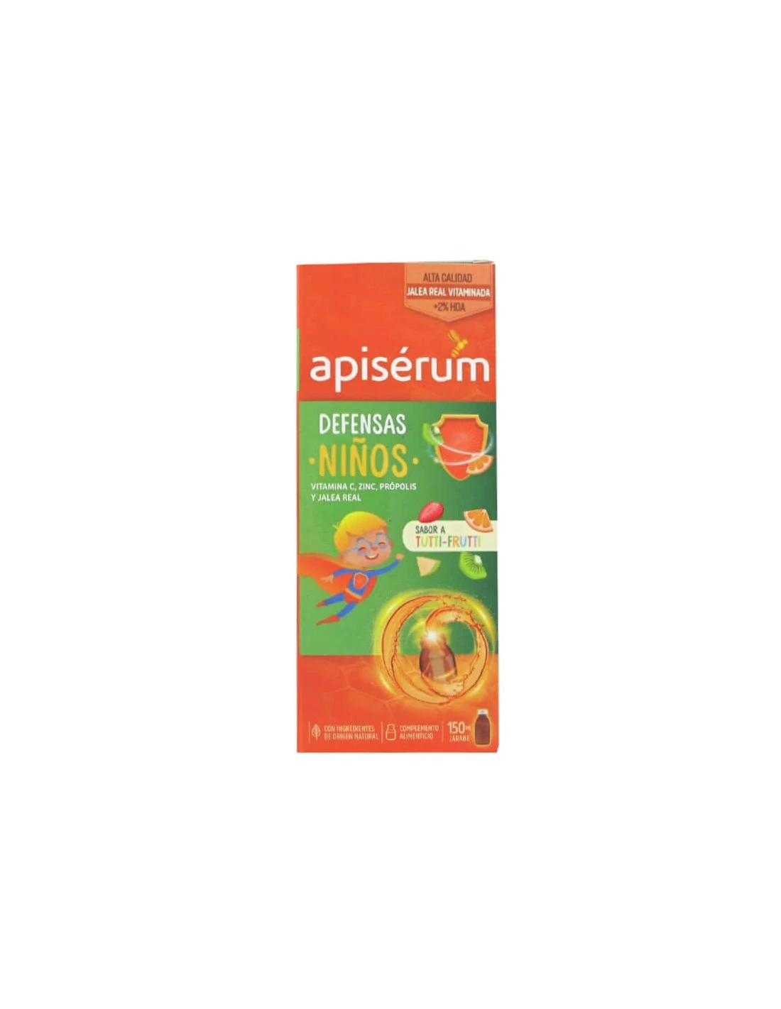 Apiserum Defensas Niños contiene jalea real, vitamina c, zinc y propolis.
