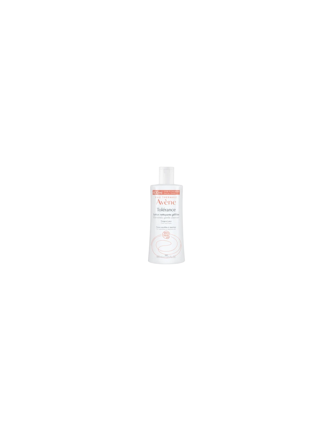 Avene Tolerance Loción Limpiadora Gelificada contiene una textura gelificada, que otorga confort y suavidad sobre la piel. Contiene agua termal de avene, que calma y suaviza la piel.