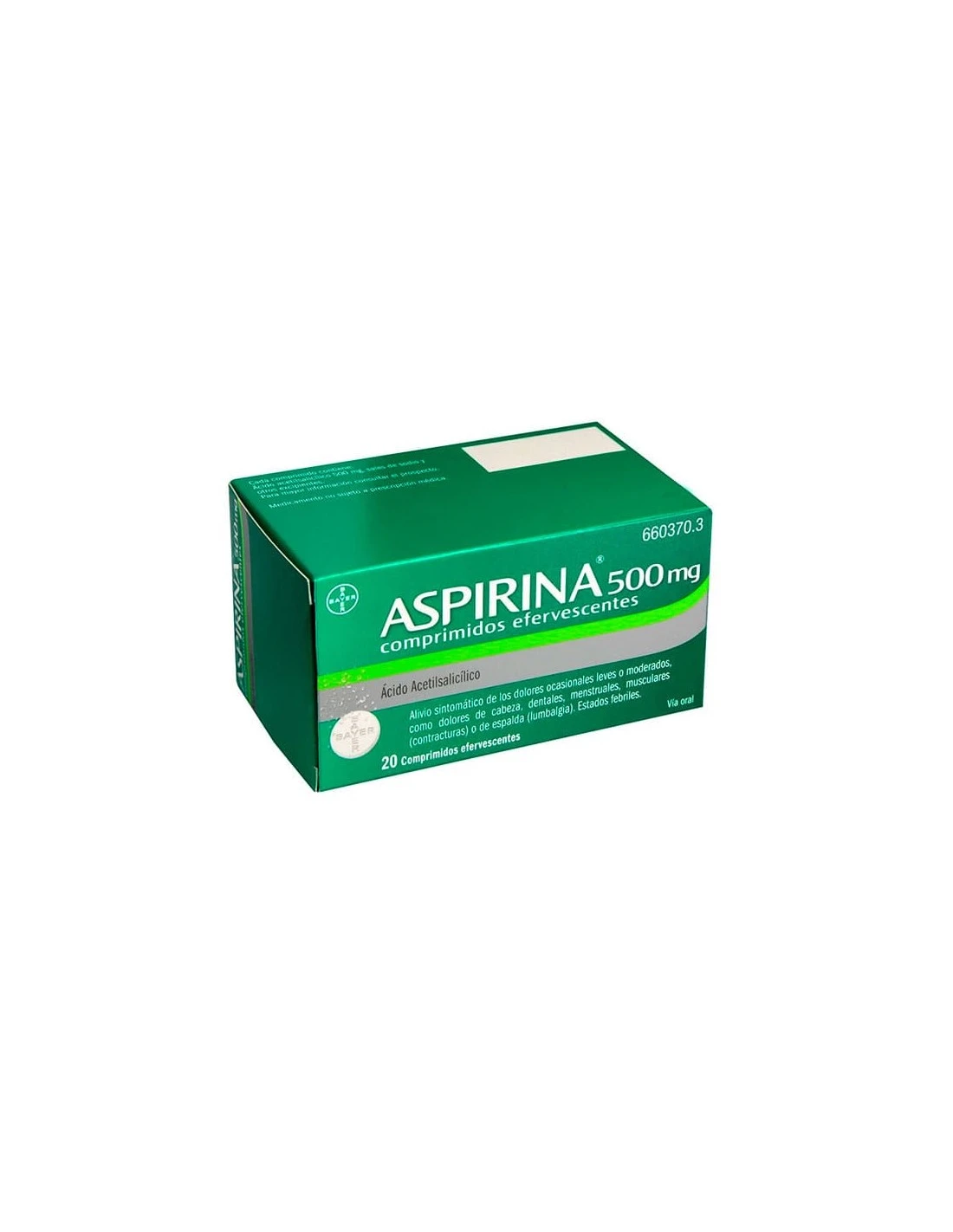 – Como principio activo: ácido acetilsalicílico, 500 mg.