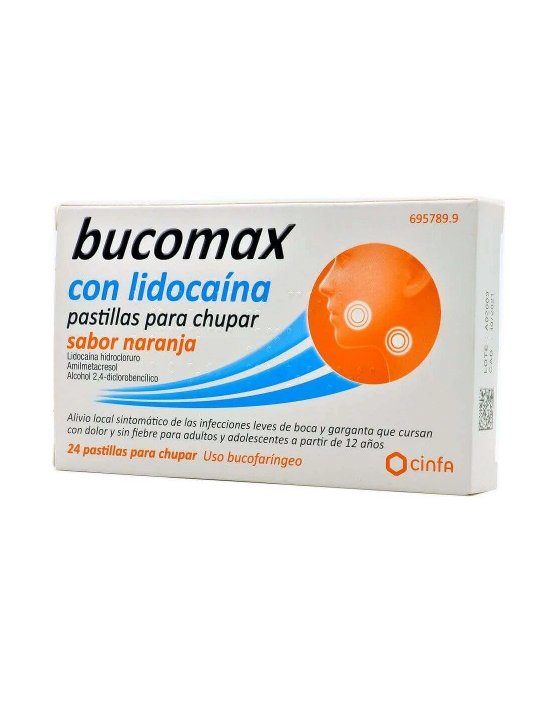 Bucomax con lidocaína pastillas para chupar sabor naranja