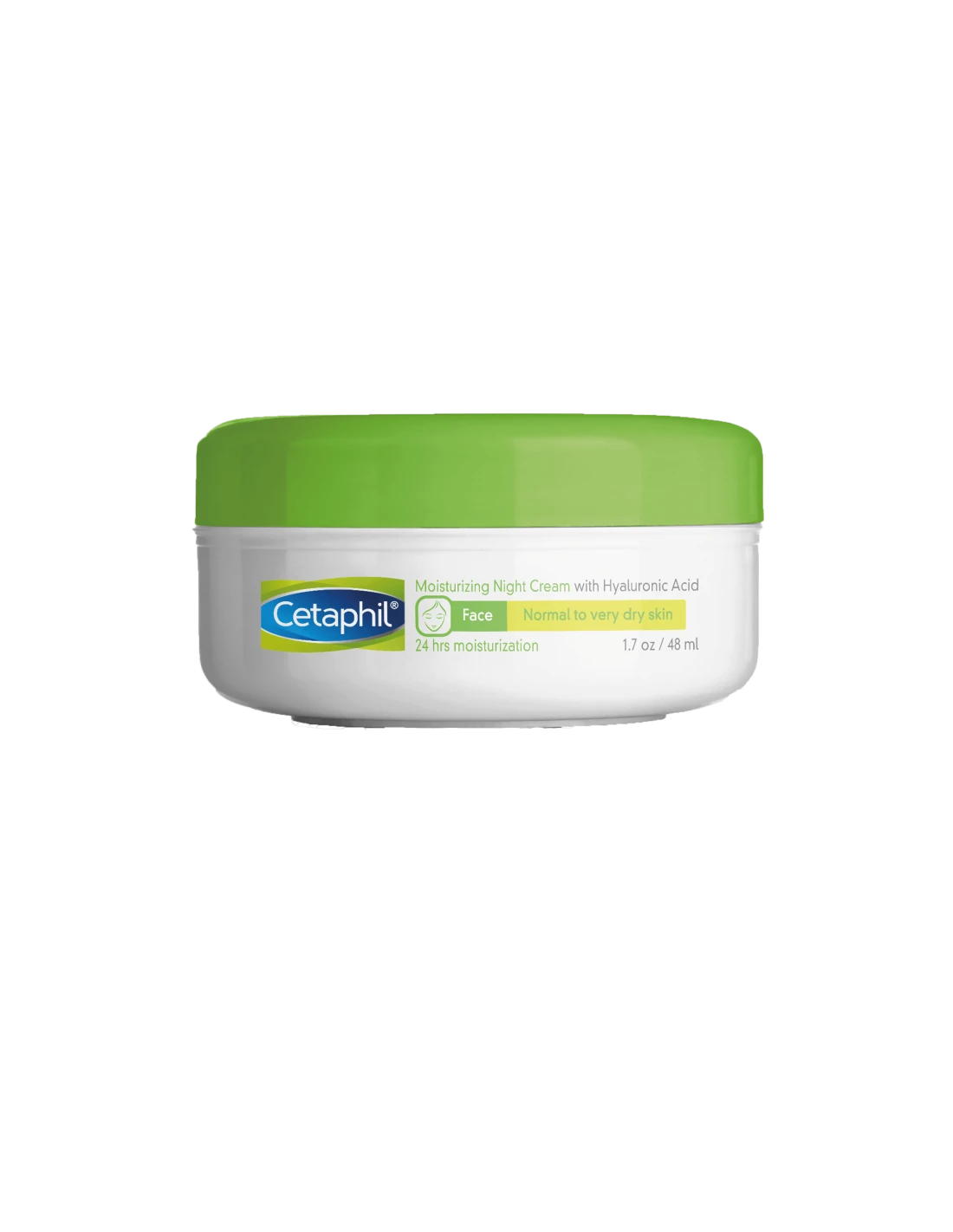 Cetaphil Crema Hidratante Facial Noche está formulado con ácido hialurónico, extracto de oliva y un complejo pro-vitamínico.