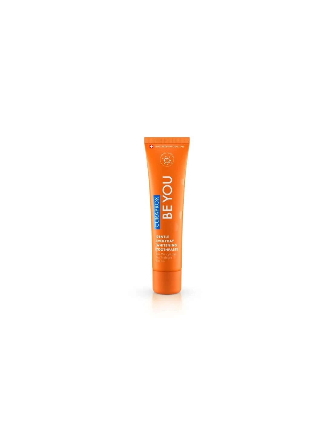Pasta blanqueadora Curaprox está enriquecida de hidroxiapatita, glucosa oxidasa, xilitol, azúcar de abedul, extractos de equinácea, naranja amarga, harpagófito, centella asiática y provitamina B5.