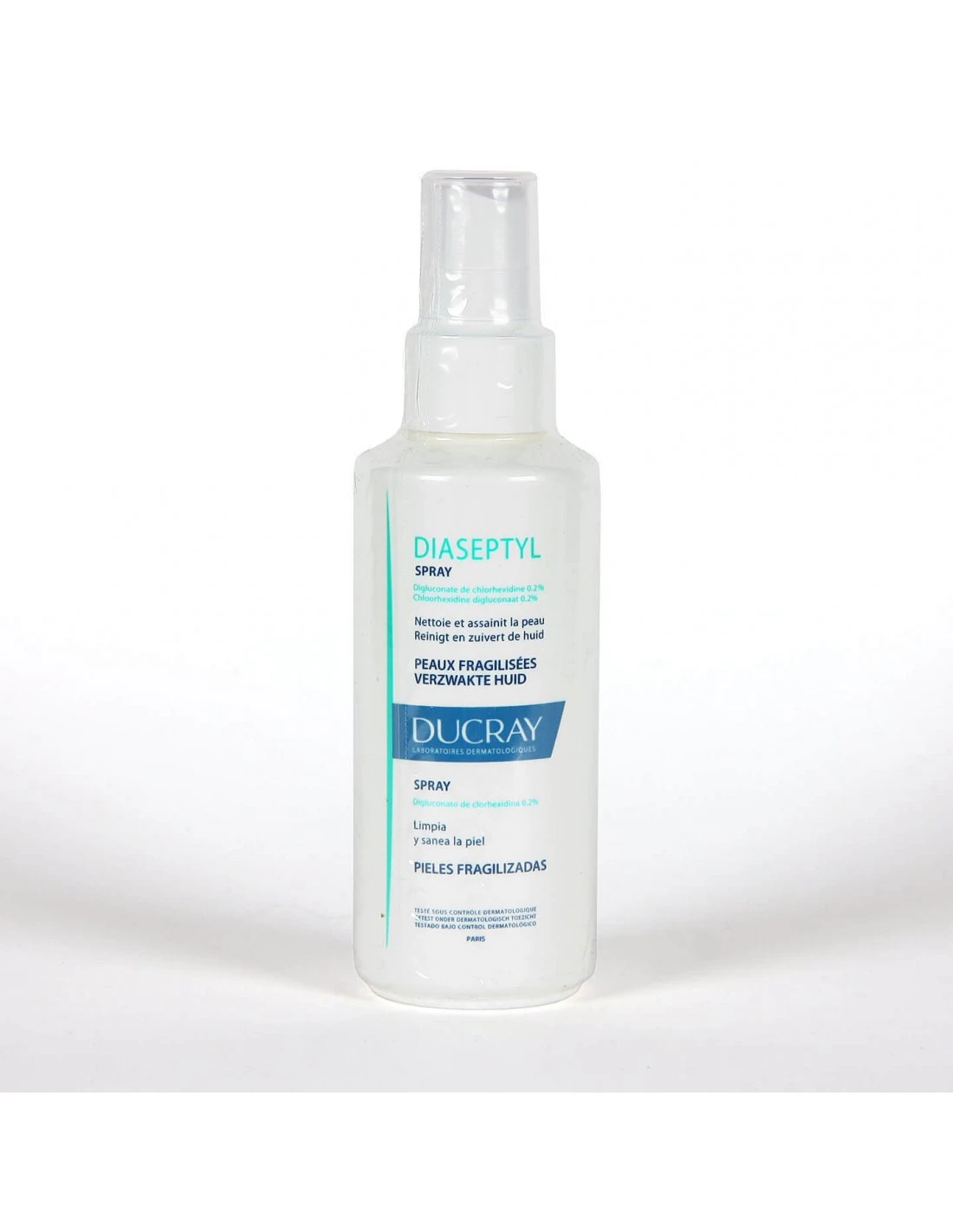 Ducray Diaseptyl Spray contiene propiedades saneantes y purificantes, gracias a la clorhexidina.