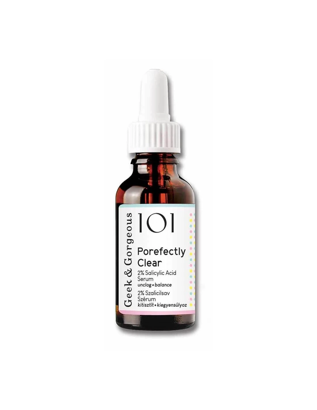 Porefectly Clear de Geek and Gorgeous es un serum que permite desobstruir los poros y equilibrar la producción de sebo en las pieles grasas y/o propensas a puntos negros, gracias a su contenido en ácido salicílico. Cuenta con una textura de gel ligero.