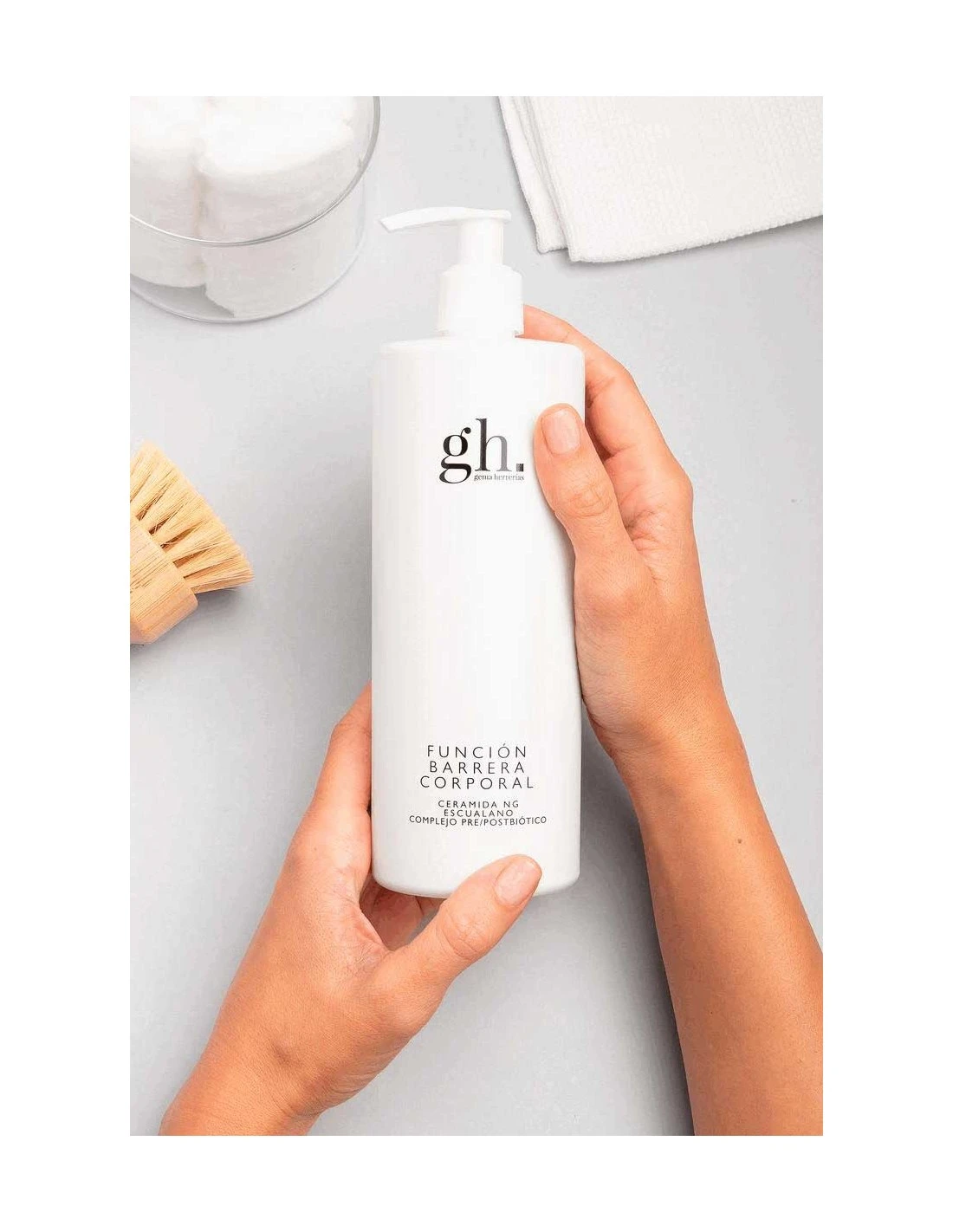 Aplicar Gema Herrerias GH Funcion Barrera Corporal por la mañana y/o noche sobre la piel del cuerpo limpia y seca.