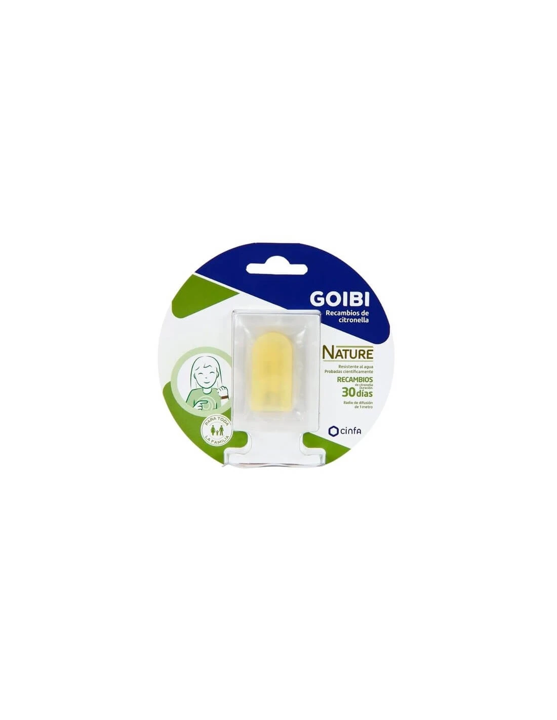 Goibi pulseras de citronella, gracias a su radio de difusión, son idóneas para toda la familia para realizar actividades al aire libre. Su resistencia al agua y sus dos recambios permiten una duración de 30 días.