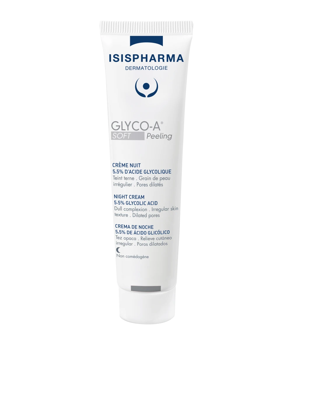 Glyco-A Soft Peeling Crema de Noche de Isispharma es un peeling superficial, que permite iluminar la piel y la deja más uniforme. Además alisa la textura de la piel, fomentando la renovación celular, dejando el cutis más radiante y cerrando los poros.