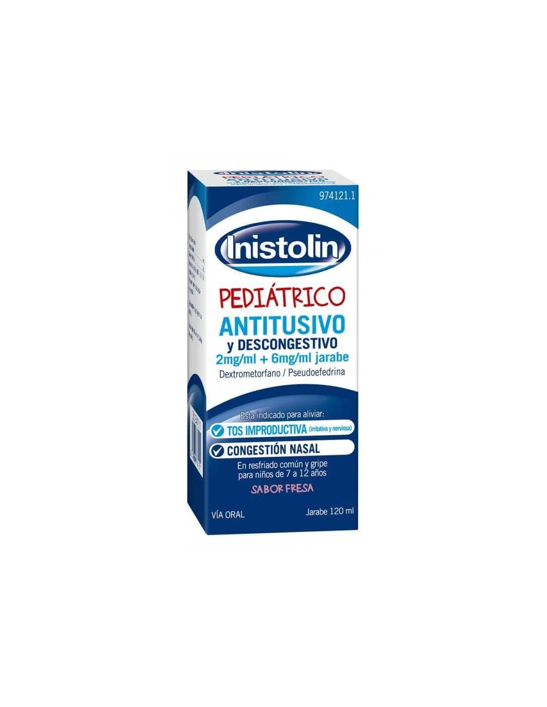 Inistolin Pediátrico Tos y Congestión es una asociación de pseudoefedrina y dextrometorfano.
