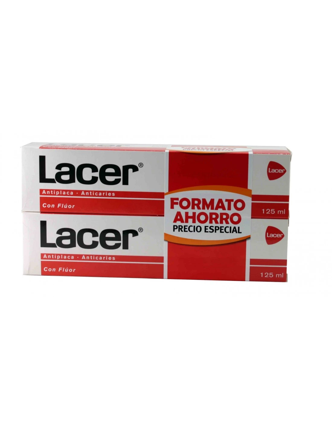 Lacer Pasta Dentifrica Duplo contiene 2.500 ppm de ion fluoruro, previene la placa bacteriana (antiplaca), combate la flora causante de la caries y refuerza el esmalte y la dentina proporcionando una protección integral de tu boca.