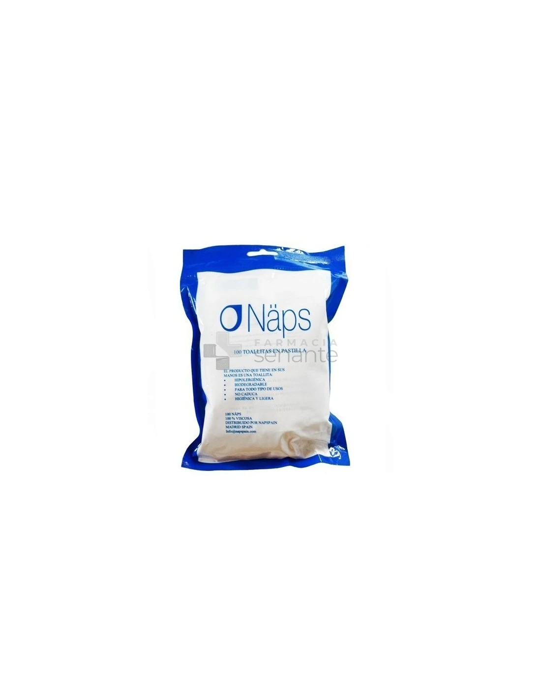 Las Toallitas En Pastilla de Naps posee 100 unidades en un formato muy práctico porque se presenta en una bolsa con auto cierre.