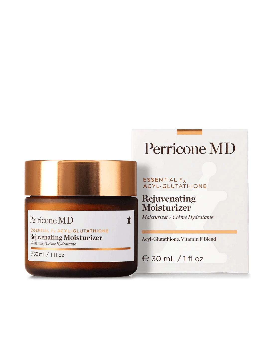 Essential Fx Acyl Glutathione Rejuvenating Moisturizer de Perricone MD es una crema hidratante llena de nutrientes y reafirmante, con una textura rica y aterciopelada. Hidrata profundamente, sin embargo, se absorbe rápidamente, sin dejar ningún residuo graso o sobrante.