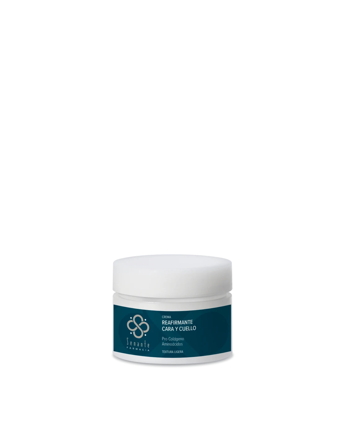 Crema Reafirmante Cara y Cuello de Senante Cosmetics favorece la formación de nuevo colágeno y elastina, además ayuda a reducir la profundidad de las arrugas y aporta firmeza a la piel. Deja la piel más nutrida, elástica, protegida y compacta.