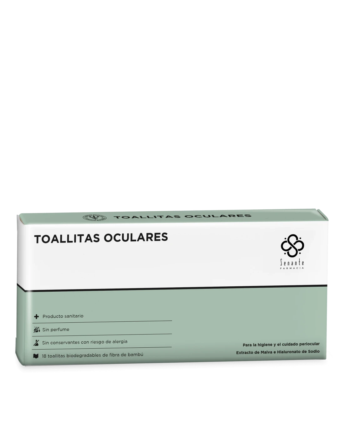 Senante Toallitas Oculares contiene extracto de malva e hialuronato de sodio.
