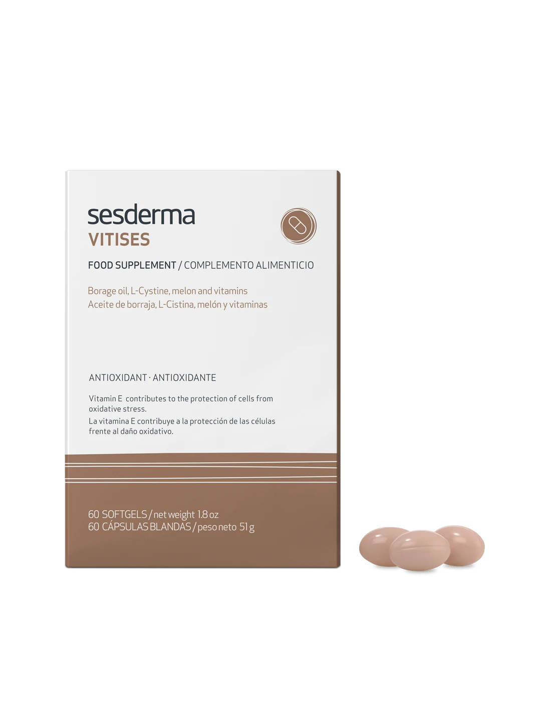 Complemento alimenticio rico en antioxidantes especialmente recomendado en pieles hipopigmentadas (que se caracterizan por presentar un alto estrés oxidativo).