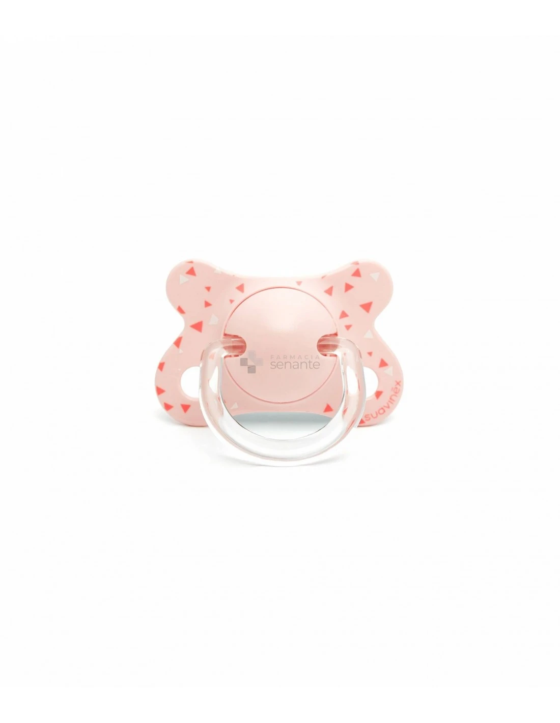 Chupete fisiológico. Silicona. Tetina fisiológica, plana y simétrica. Mínima presión en el paladar. 0% Bisphenol A.