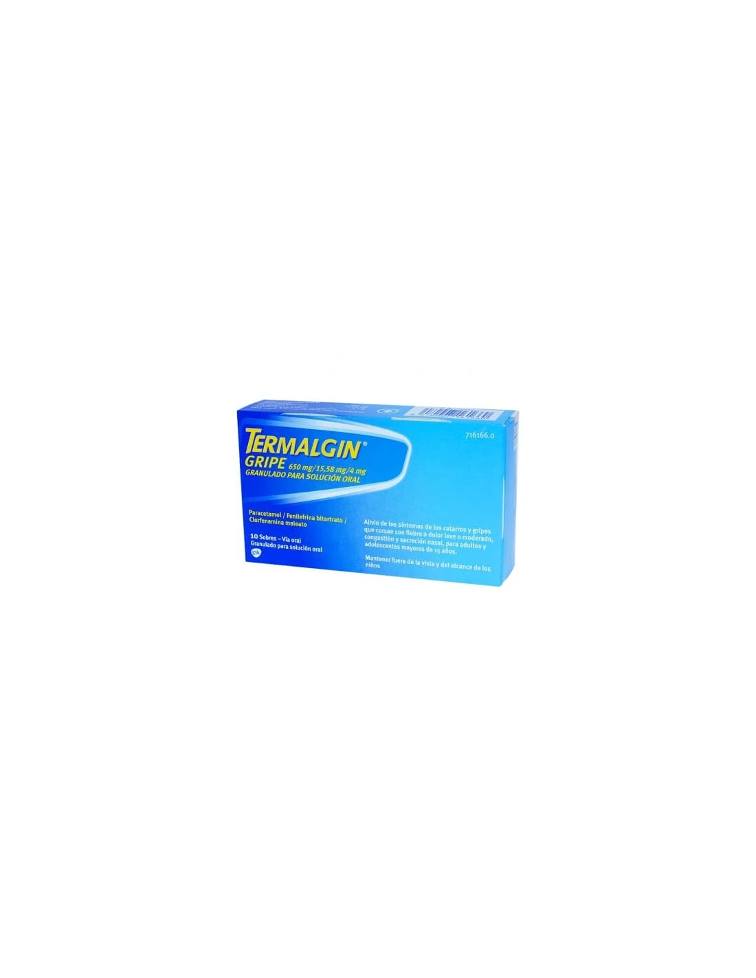 TERMALGIN GRIPE es granulado para solución oral de color blanco o blanco amarillento y sabor a naranja, que se presenta en sobres que se envasan en estuches de cartón con 10 sobres.