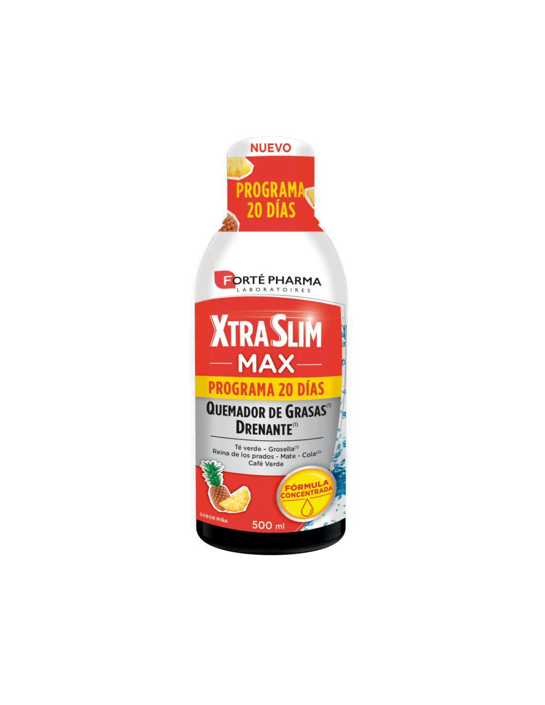 Xtraslim Max de Forte Pharma ayuda a quemar las grasas, como complemento a un programa de pérdida de peso, gracias a la nuez de cola. Además favorece las funciones de eliminación del organismo, gracias a su contenido en grosella.
